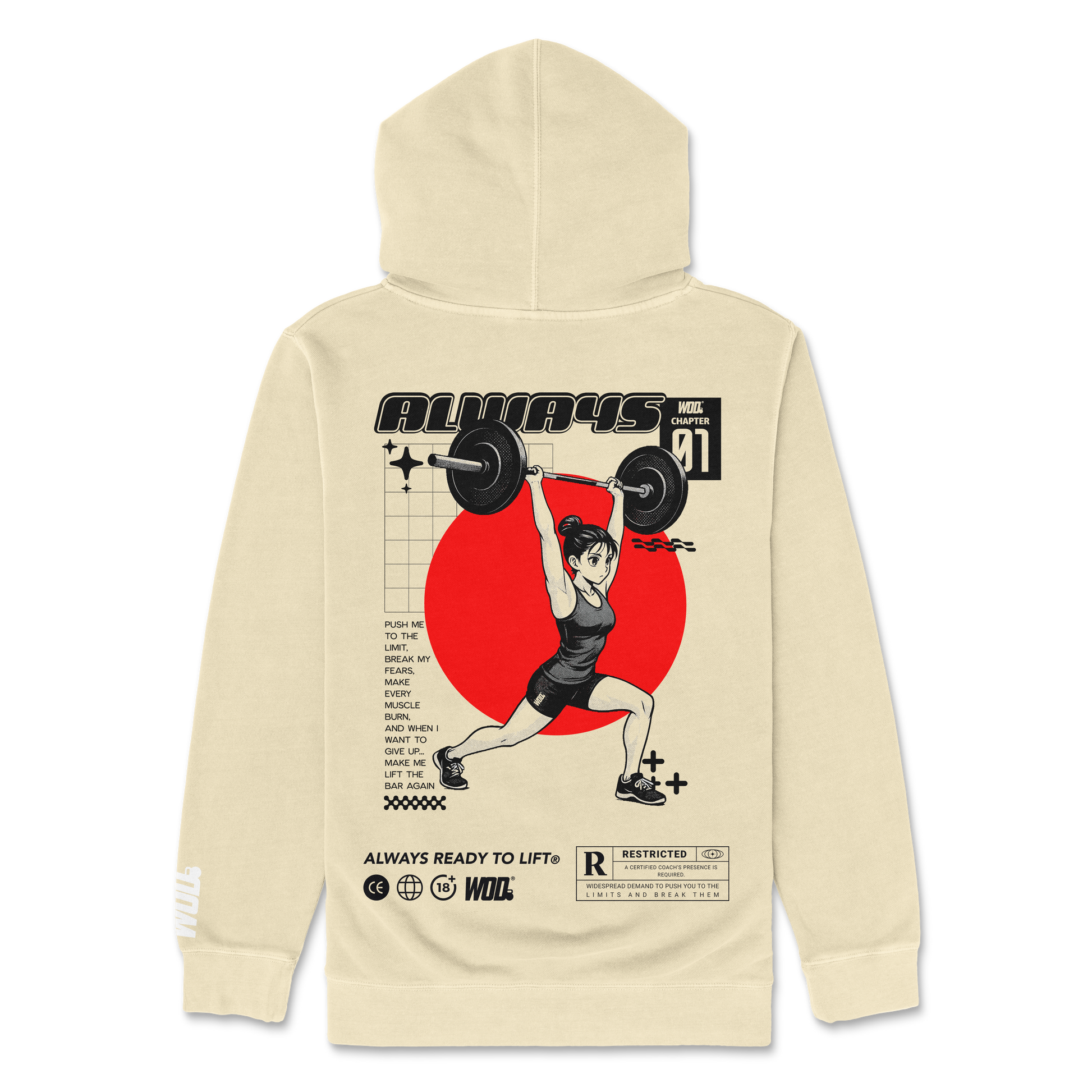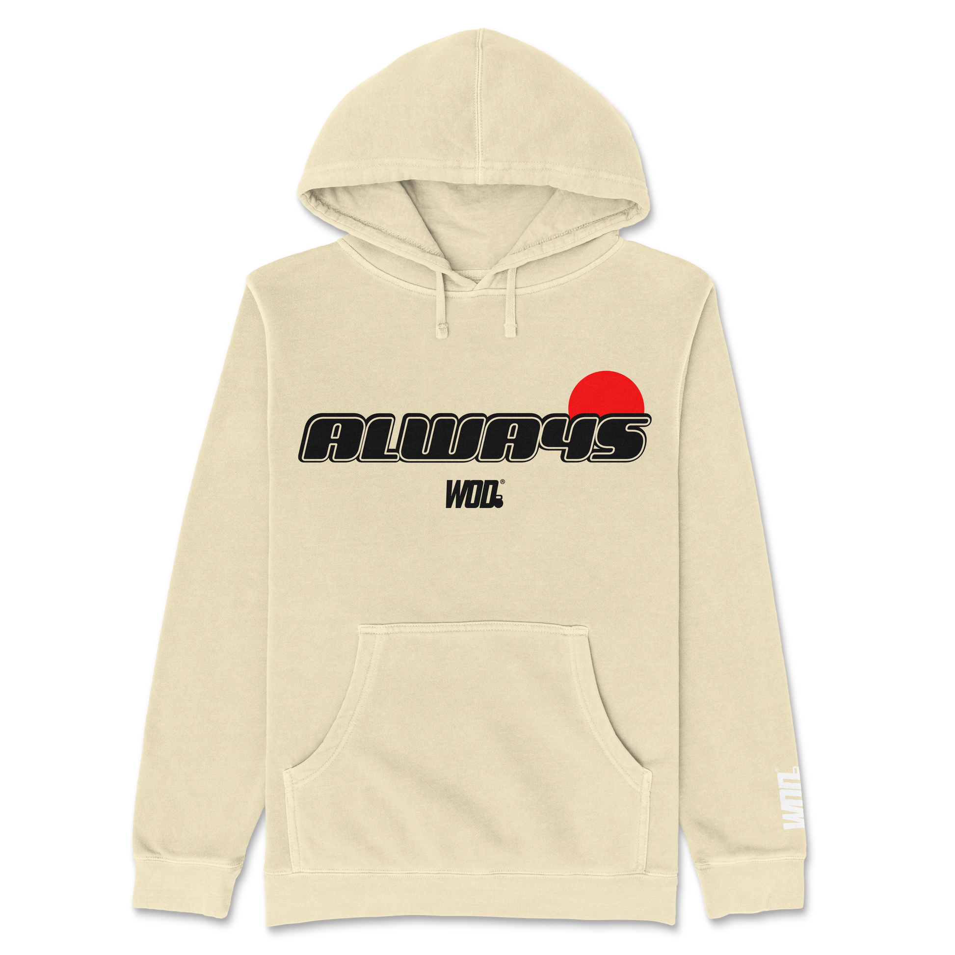 En la parte frontal destaca el logotipo ALWAYS WOD con el sol rojo como símbolo de energía y constancia.